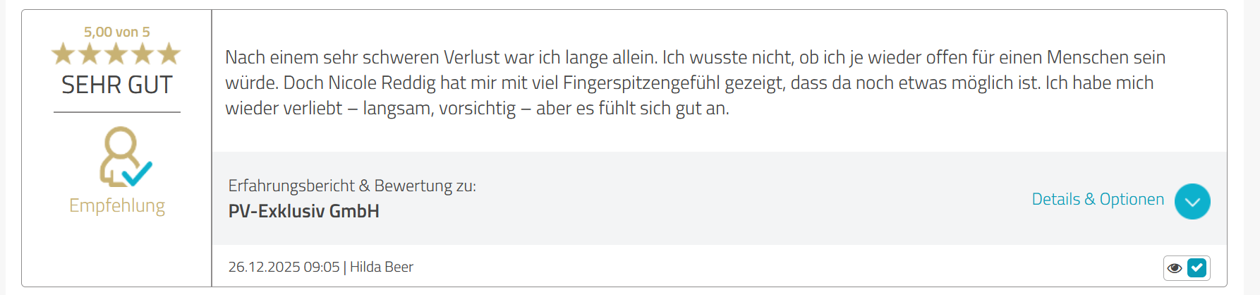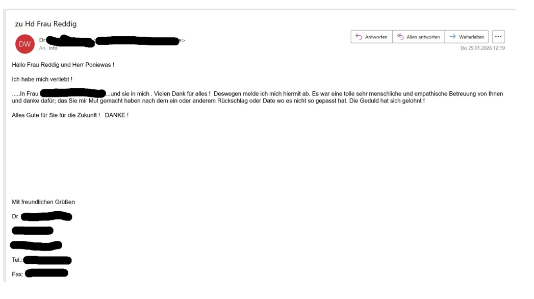 Deshalb ist es wichtig, Erfahrungen und Bewertungen immer im Gesamtbild zu betrachten. Neben öffentlichen Bewertungen erreichen uns über viele Jahre hinweg auch zahlreiche persönliche Zuschriften von Klienten, die ihre positiven Erfahrungen mit uns teilen.